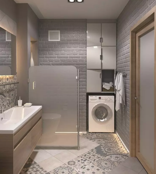 洗漱臺下預(yù)留洗衣機(jī)的位置,不僅節(jié)約空間,也讓衛(wèi)生間顯得非常整齊。洗衣機(jī)在洗漱臺下,將水注入洗衣機(jī)中,也非常方便。