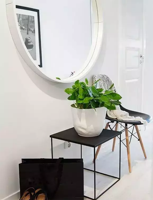 ▲鏡子絕對(duì)是玄關(guān)的標(biāo)配,出門(mén)前整理衣裝,美美噠出門(mén)~還能起到放大空間的效果。