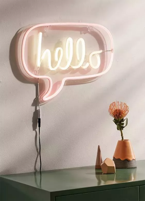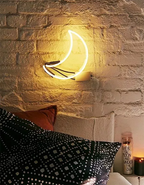如果你對(duì)霓虹燈的印象還停留在酒吧和商業(yè)街,那端端可真是要?dú)獾椒籽哿恕T煨投嘧兊哪藓鐭舨粌H能做臥室空間的氛圍照明,還能替代裝飾畫(huà)做床頭區(qū)的主要裝飾。