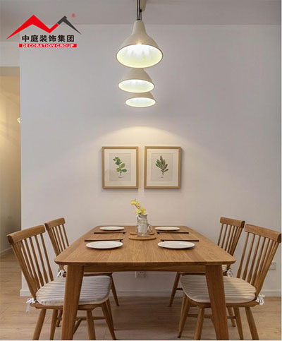 原木的家具給人很溫馨淡雅的感覺(jué)。整潔的乳膠漆沙發(fā)墻,掛上2幅簡(jiǎn)單的裝飾畫,顯得精致又優(yōu)雅舒適;
