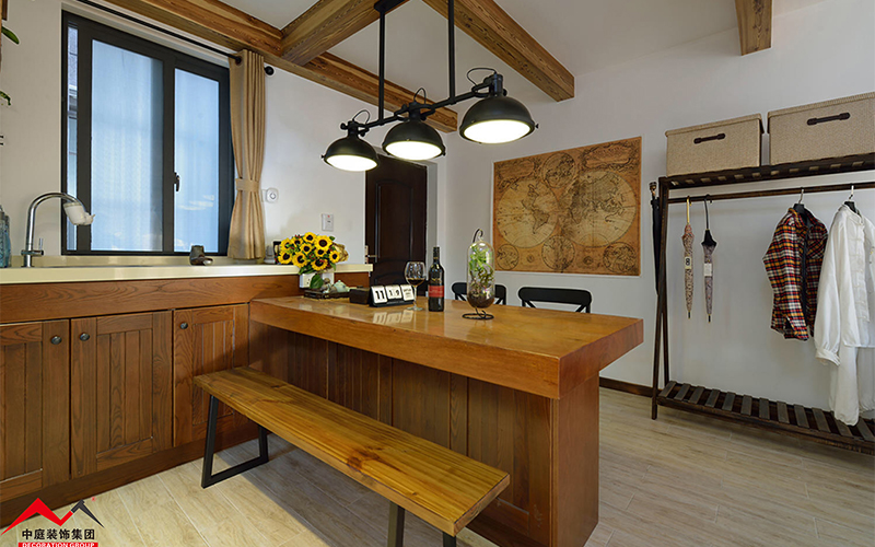 廚房繼續(xù)延續(xù)整個(gè)空間的輕美式風(fēng)格,木制門(mén)板造型精致美觀典雅,讓人賞心悅目!在這樣美的空間為一家人準(zhǔn)備餐點(diǎn),難道不是一種享受嗎?