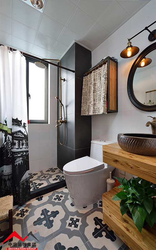 衛(wèi)生間寬闊凈朗,面盆別有一番特色,墻邊放置的小立柜既能收納也能放置裝飾畫(huà),整個(gè)浴室藝術(shù)感滿滿。
