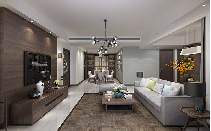 3、假如餐廳和客廳是有隔斷分開的,可以在客廳使用木地板。