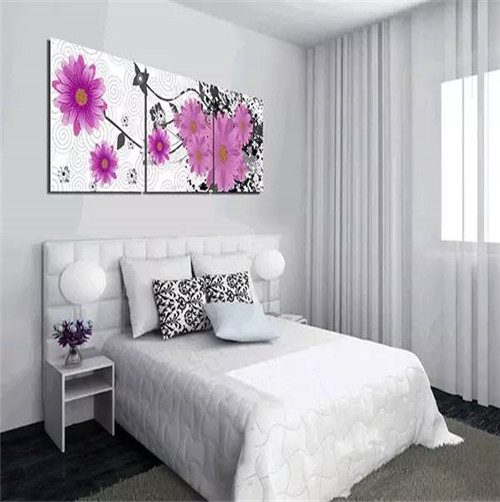 臥室是個人生活的私密空間,也是休息睡眠場所。臥室要營造溫馨浪漫、舒適恬靜的氛圍,掛畫以暖色為主色調(diào)。可以選擇人物人體、花卉等題材掛畫,當(dāng)然也可以掛自己的肖像畫或結(jié)婚照,以增進(jìn)感情。