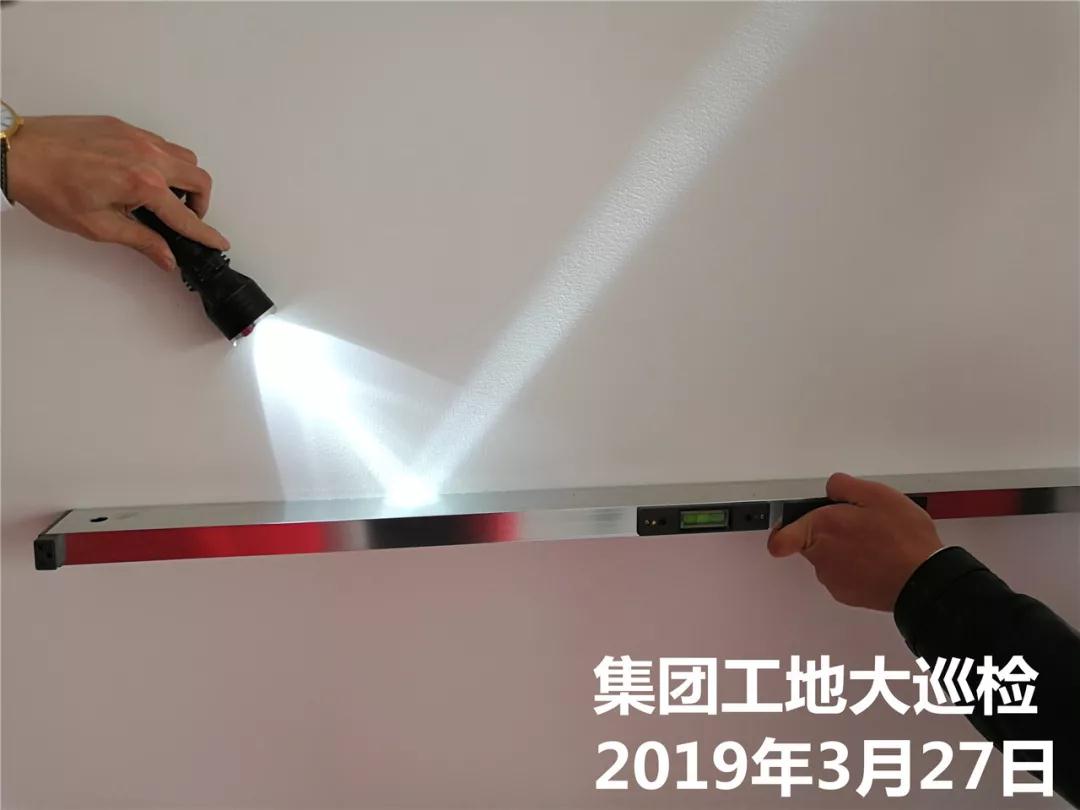 運(yùn)營(yíng)部成云總經(jīng)理與張立安總經(jīng)理用強(qiáng)光手電筒檢查墻面膩?zhàn)邮┕?/span>