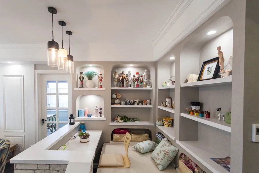 在廚房區(qū)域,用來(lái)放置一些調(diào)料或者餐具之類(lèi)的物品,不僅一目了然,方便拿取,也有裝飾的效果,好看實(shí)用。