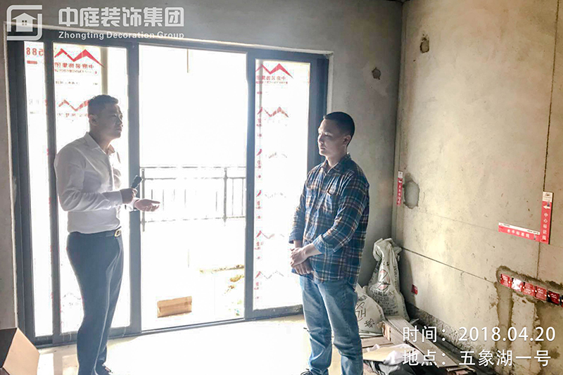 集團(tuán)總裁丁總與剛好來(lái)現(xiàn)場(chǎng)的業(yè)主進(jìn)行交談,業(yè)主對(duì)公司服務(wù)特別滿(mǎn)意,他說(shuō)到,他平時(shí)只有周六周日休息時(shí)才會(huì)來(lái)工地,公司的6大管家都會(huì)把每個(gè)流程在微信服務(wù)群上進(jìn)行匯報(bào),很放心省心。