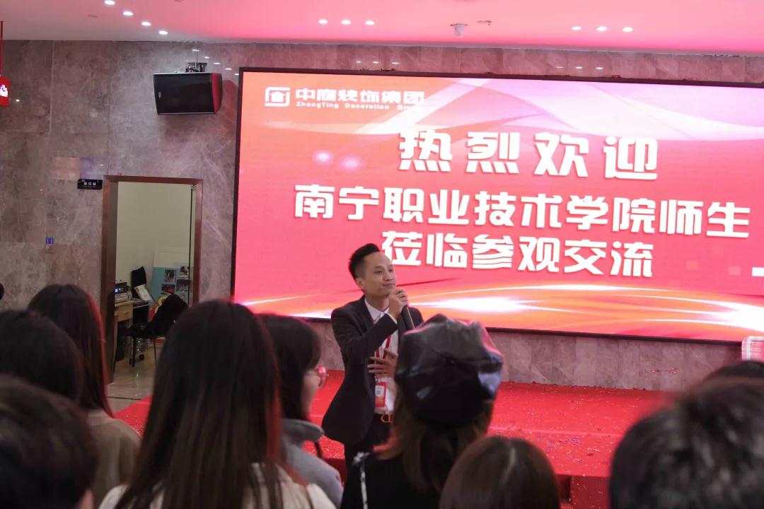 中庭裝飾集團歡迎更多的南寧本地院校組織學(xué)生到我司進行參觀交流。通過建立校企合作平臺,在學(xué)校與企業(yè)之間建立紐帶,給學(xué)生們提供更多的社會實踐的機會,提高學(xué)生的學(xué)習(xí)和工作能力,培養(yǎng)實用性人才。