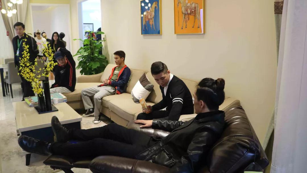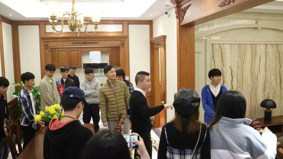 中庭裝飾集團二樓擁有9個設(shè)計風(fēng)格的樣板間,張總和楊總帶領(lǐng)學(xué)生參觀各大風(fēng)格樣板間,給同學(xué)們講解樣板間的設(shè)計風(fēng)格,感受其中的設(shè)計細節(jié)。