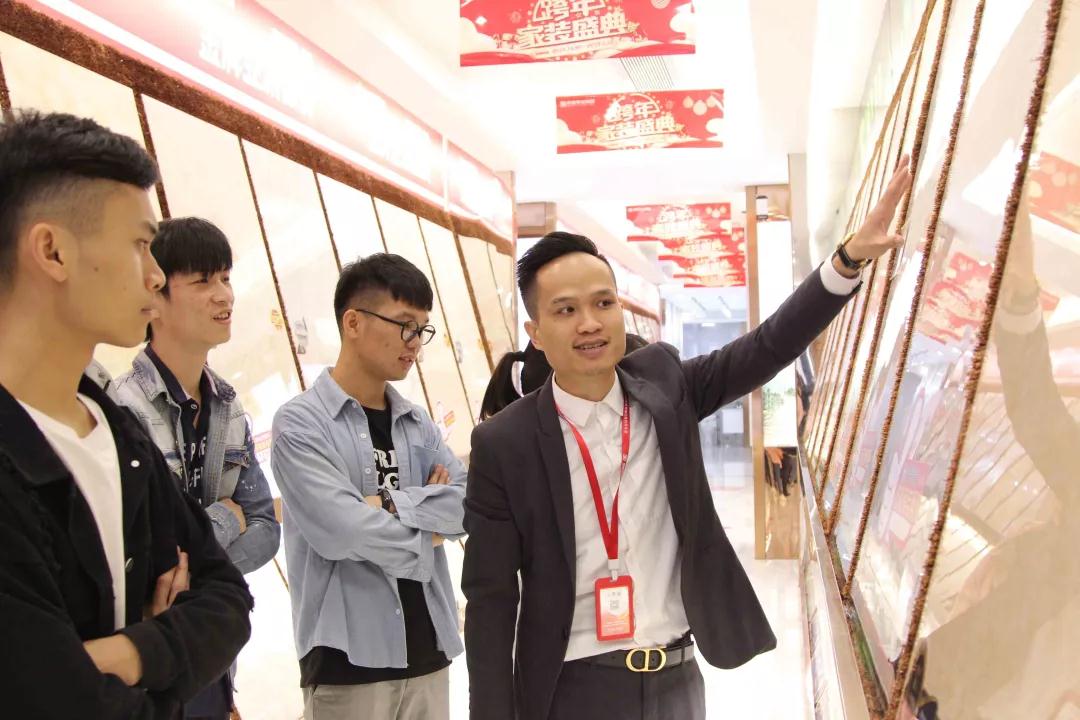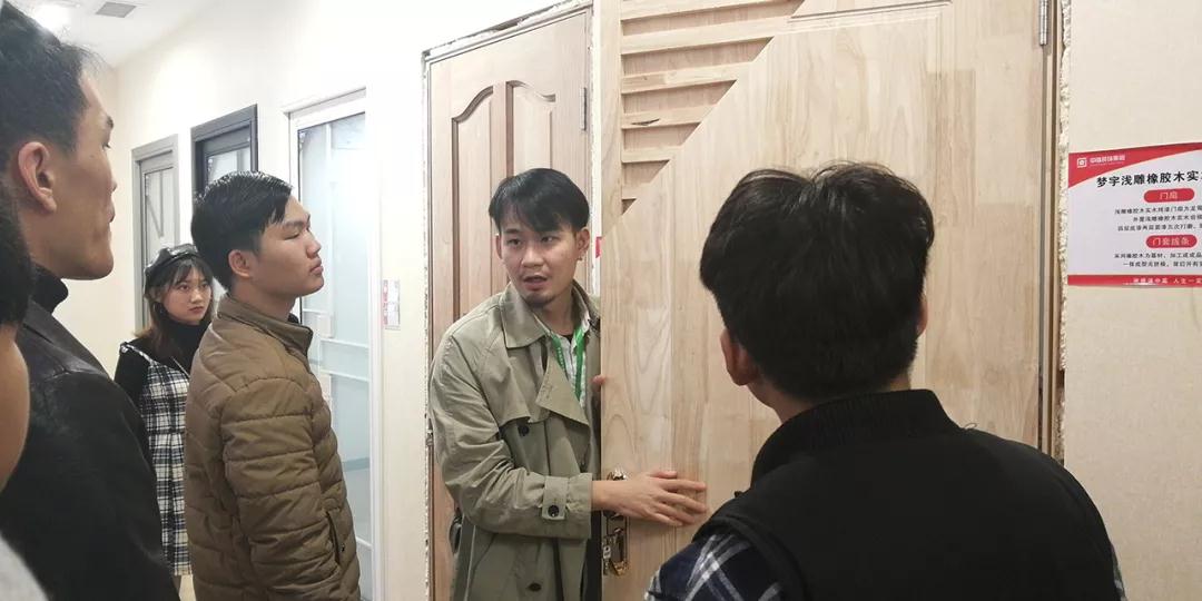 材料展示區(qū)由運營部總經(jīng)理楊總和設(shè)計部經(jīng)理韋昌豪帶領(lǐng)學(xué)生參觀。