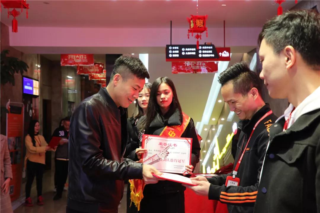 副總裁張浩熙為獲獎(jiǎng)團(tuán)隊(duì)頒發(fā)榮譽(yù)證書和獎(jiǎng)金