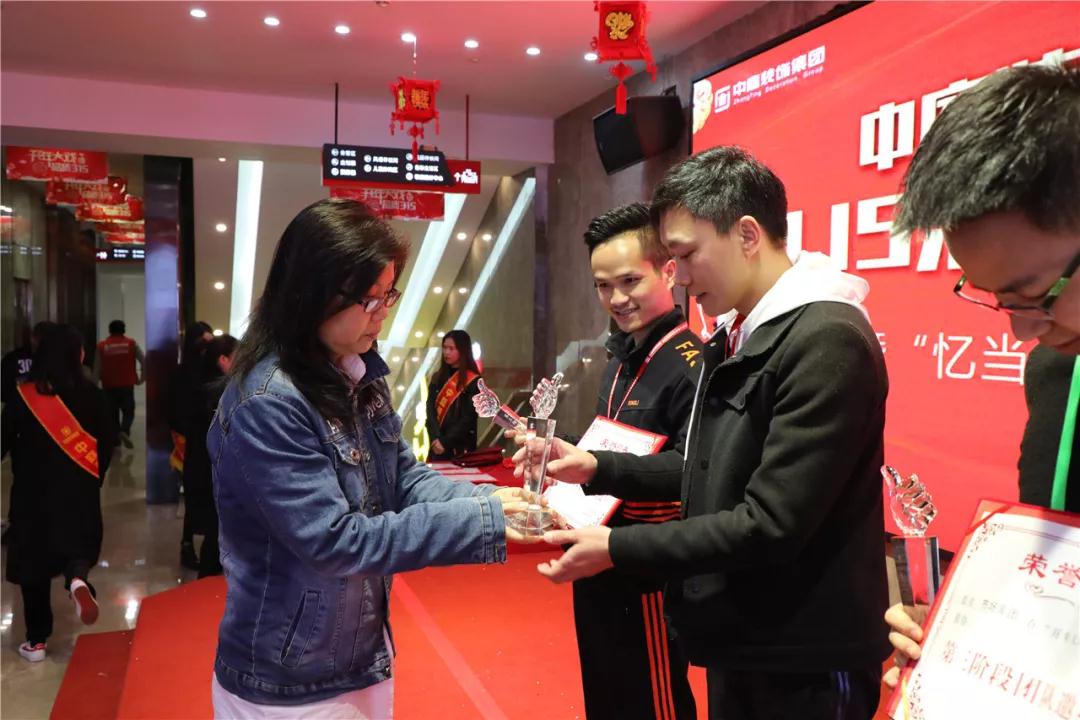 丁胡總裁為獲獎(jiǎng)團(tuán)隊(duì)頒發(fā)榮譽(yù)證書和獎(jiǎng)杯