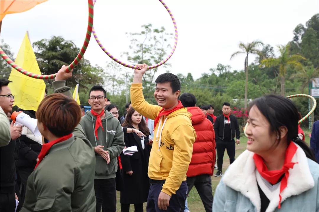 游戲規(guī)則:小組人員手牽手,從第一個(gè)人傳遞拉呼啦圈至最后一人,中途隊(duì)員不能放開手或者用手去接觸呼啦圈,否側(cè)重來(lái),完成任務(wù)團(tuán)隊(duì)。