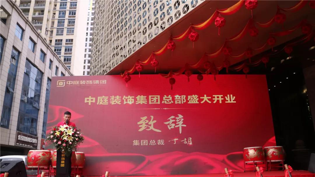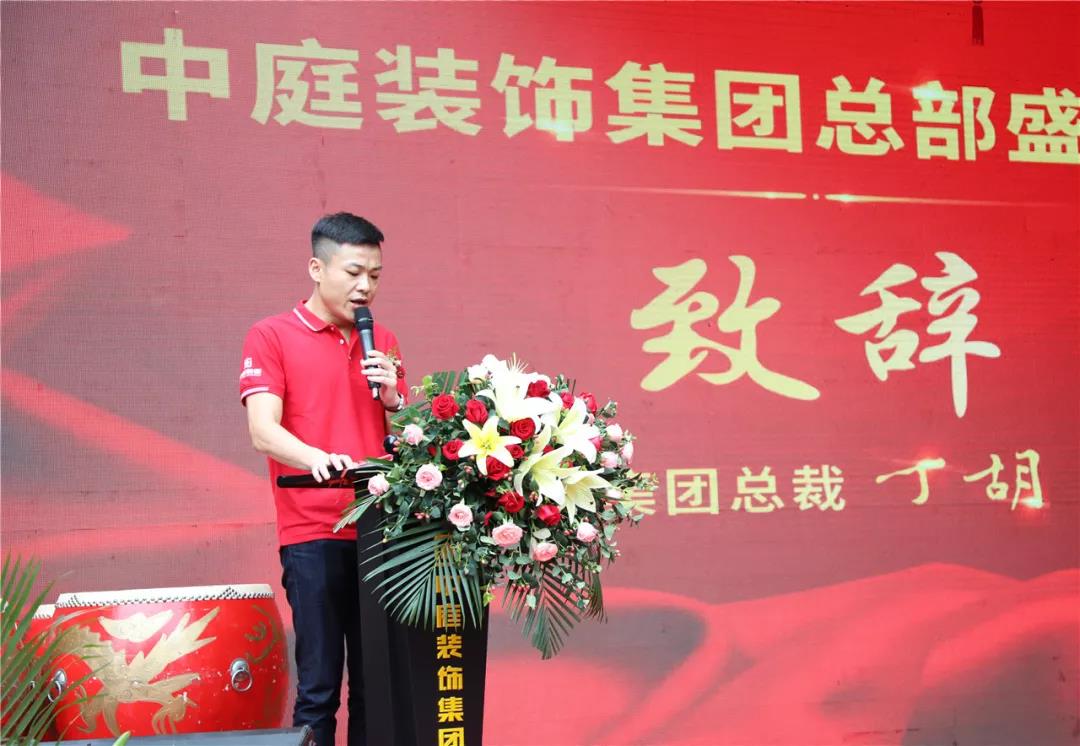 ▲ 集團(tuán)總裁丁胡代表中庭裝飾集團(tuán)致辭