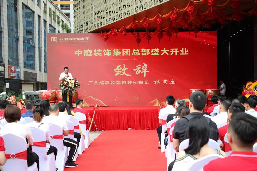 楊會長代表廣西建筑裝飾協(xié)會為集團(tuán)的盛大開業(yè)慶典活動送上真摯的祝福,同時對集團(tuán)多年來不忘初心,在廣西裝飾行業(yè)深耕細(xì)作,以優(yōu)質(zhì)的服務(wù)和質(zhì)量為廣大家庭打造了環(huán)保、綠色、健康的居住環(huán)境,營造了良好的行業(yè)環(huán)境給予高度的贊揚(yáng)和認(rèn)可,也預(yù)祝中庭裝飾集團(tuán)此次開業(yè)活動圓滿成功,取得佳績,更上一層樓!