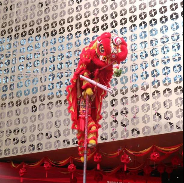 在鏗鏘有力、熱鬧非凡的鑼鼓聲中,火舞祥獅將寓意著“生財”的生菜送到集團(tuán)總裁丁胡手中,為中庭裝飾集團(tuán)獻(xiàn)上祥瑞的祝福。