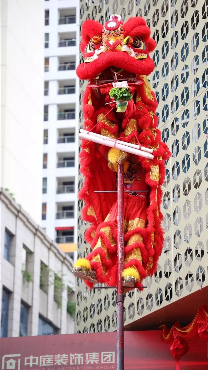 激揚(yáng)的鼓樂陣陣響起,象征著吉祥和財富的雄獅迅猛登高,見青、喜青、望青、探青、采青。