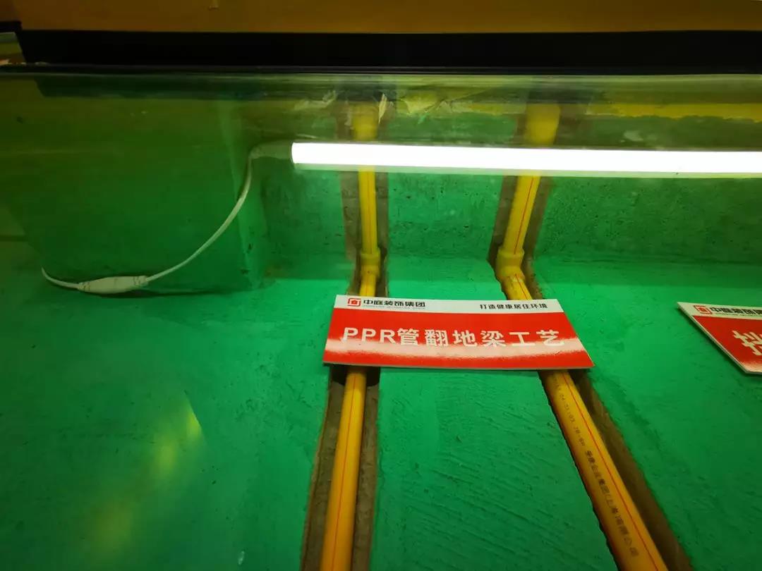 水管翻地梁工藝:進衛(wèi)生間水管翻墻,防止后期瓦工施工踩踏到水管,導(dǎo)致水管震動引起防水開裂,從而導(dǎo)致防水漏水。