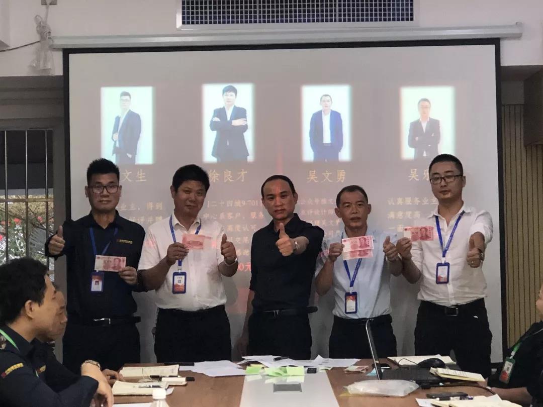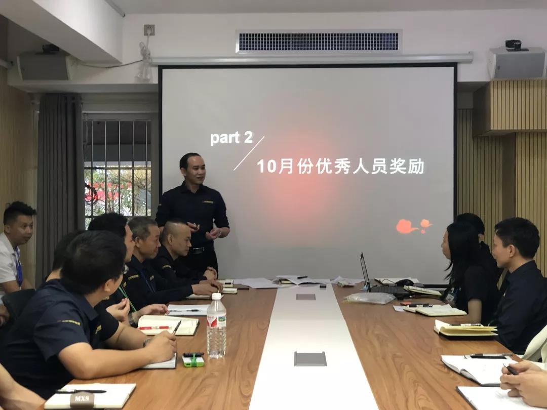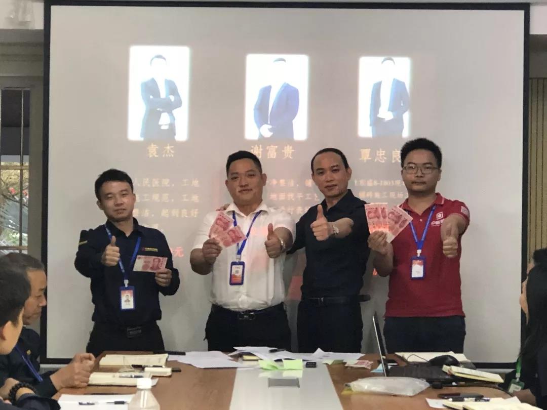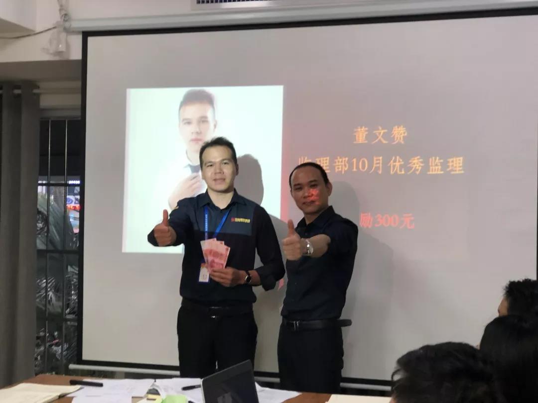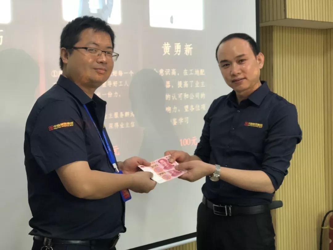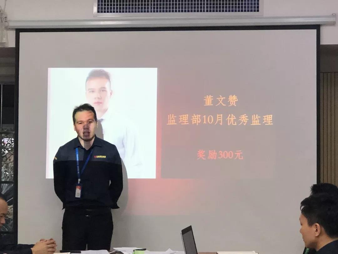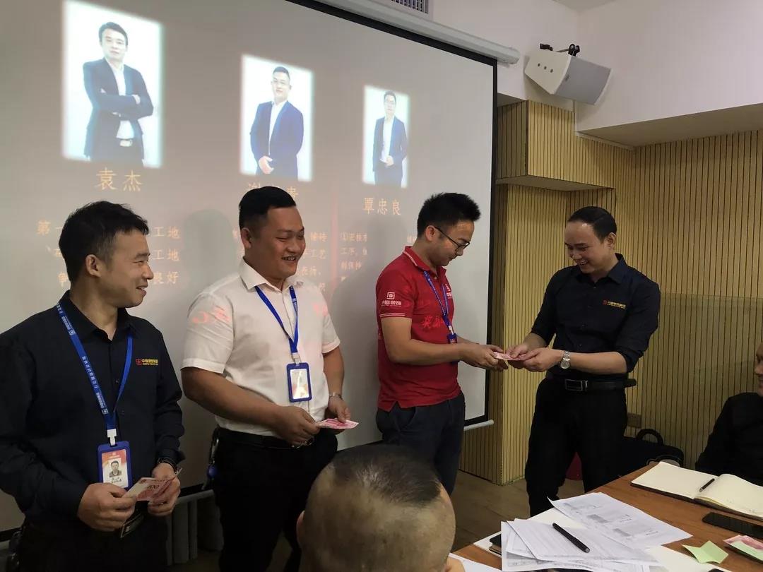 工程質量管理中心總經理吳文戰(zhàn)給10月表現(xiàn)優(yōu)秀的家人頒發(fā)獎勵: