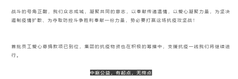 抗疫攻堅(jiān),人人有責(zé)丨中庭集團(tuán)首批員工愛(ài)心募捐已到位