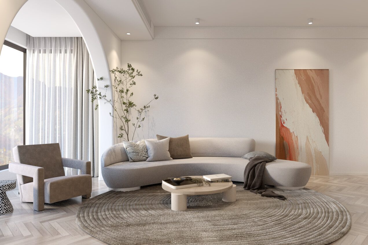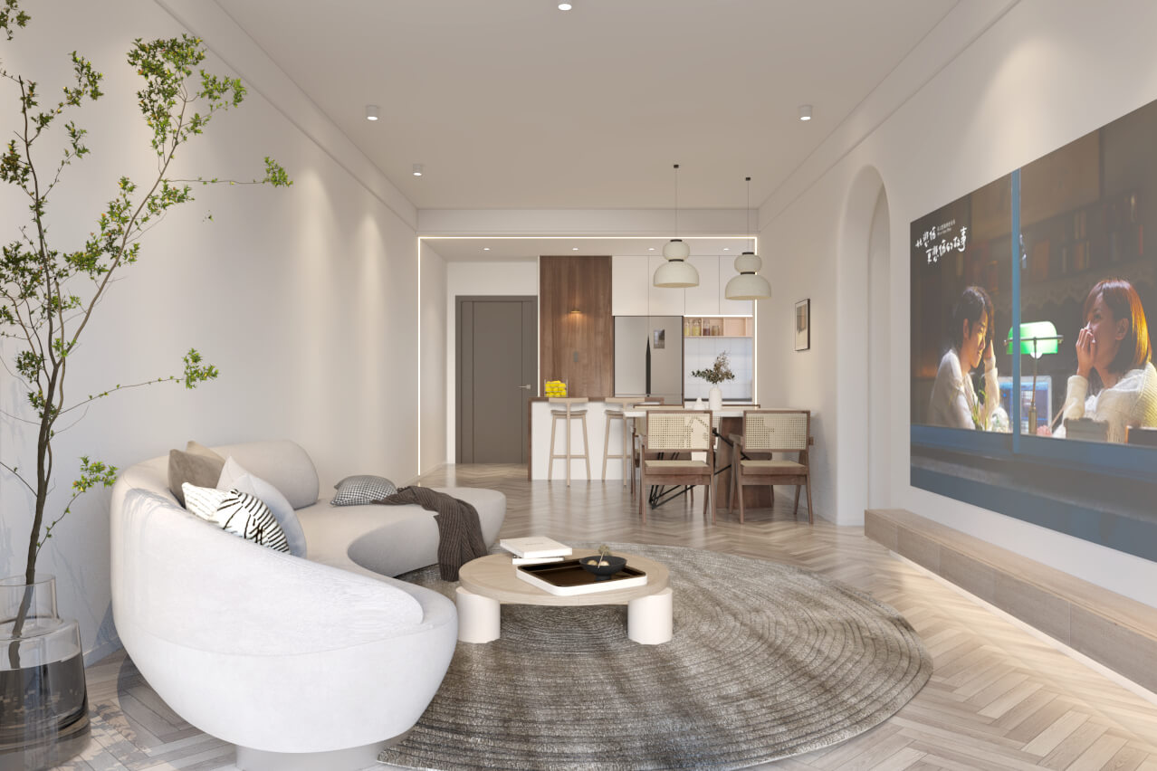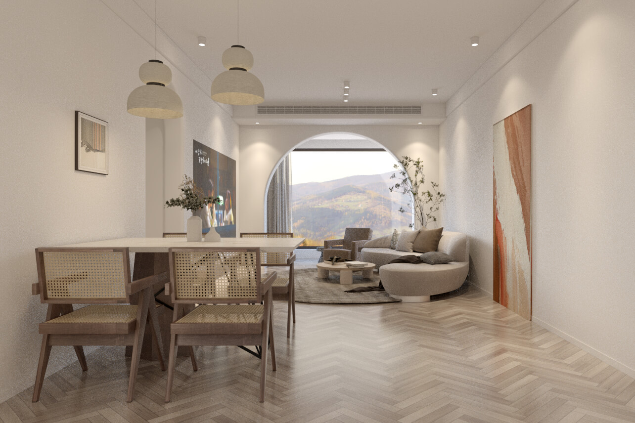 本案總面積101㎡。業(yè)主喜歡簡單干凈,又帶一點法式的浪漫。設(shè)計師根據(jù)業(yè)主的喜好與需求,整體以白色為主,再用淺咖啡、褐色作為點綴,整體自然又溫馨,簡單的造型營造溫馨感與美感。