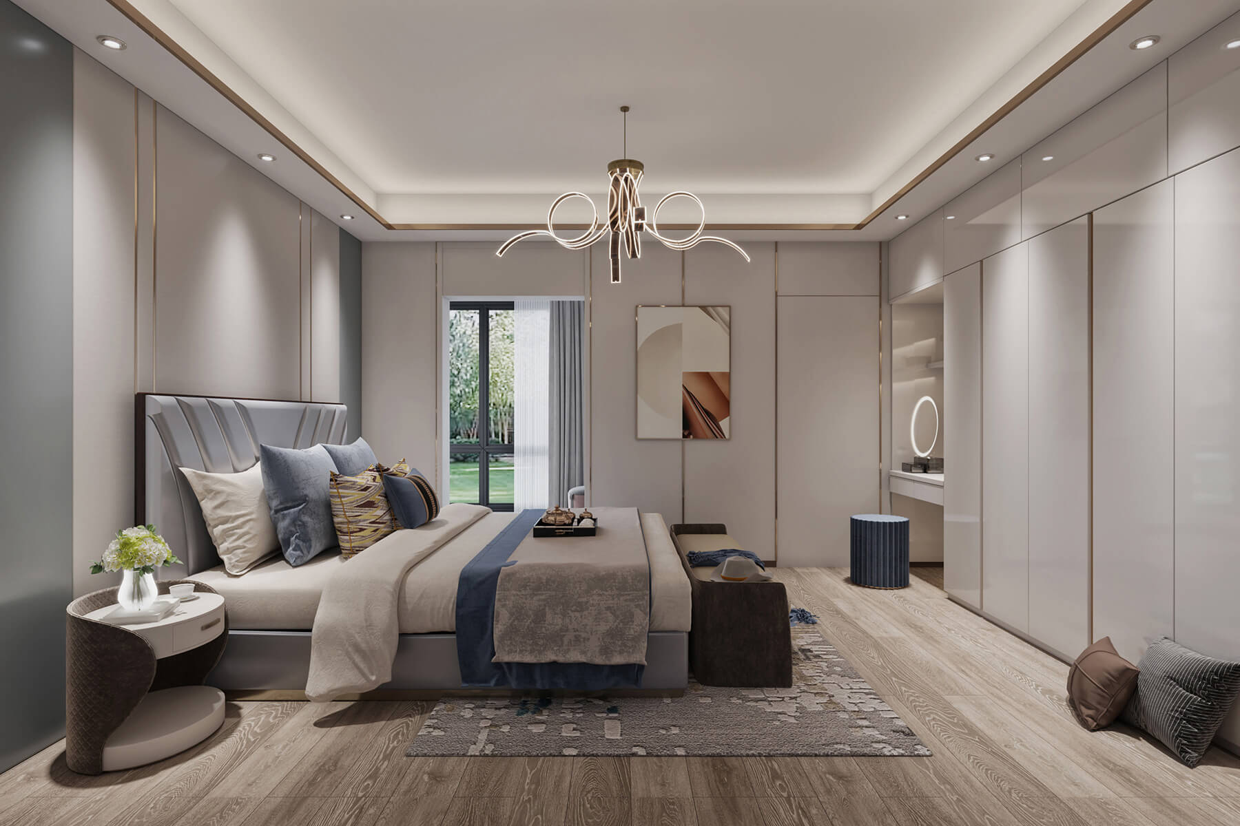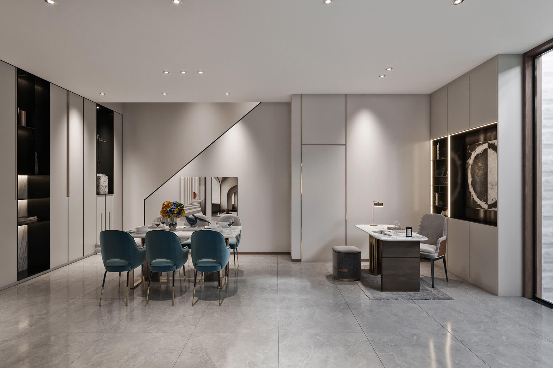 瀏覽量:617本案總面積260㎡??臻g以簡單而富有設(shè)計感的材質(zhì),搭配一些低飽和的時尚色,搭建舒適宜人的視感與體驗,結(jié)合一些時尚簡約掛畫和擺件,呈現(xiàn)一個簡約舒適又溫馨的居住環(huán)境。
