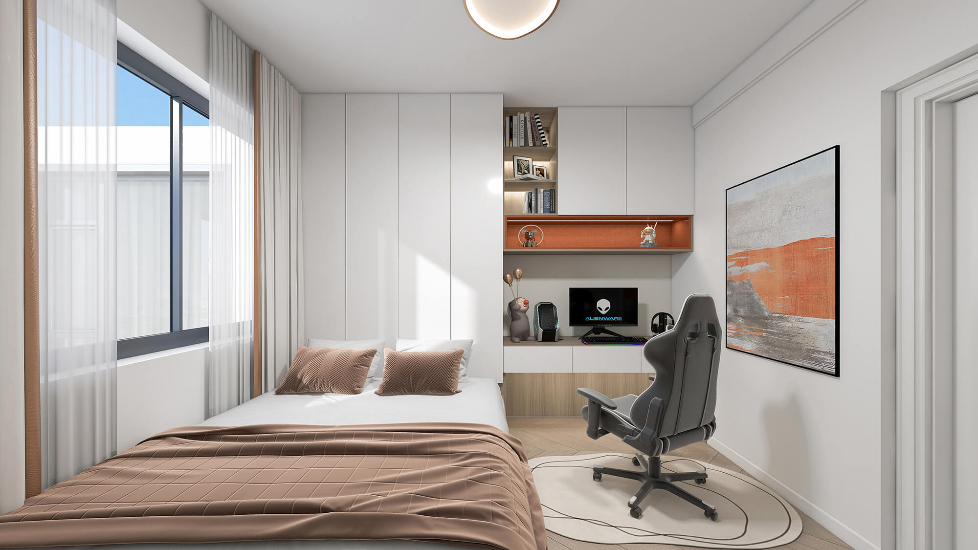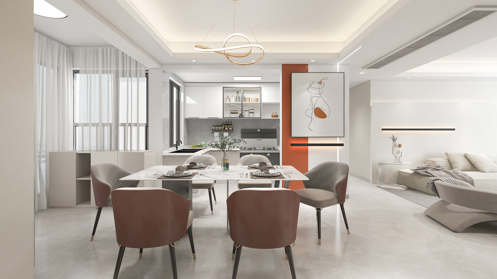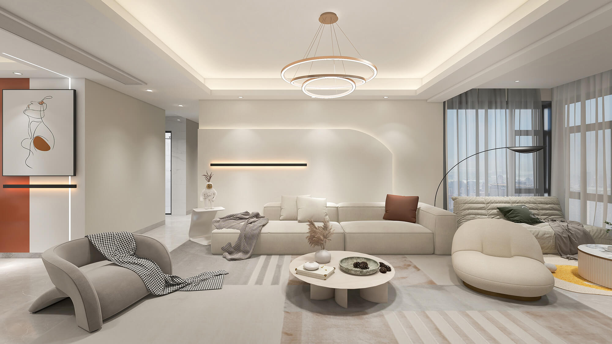 本案例戶(hù)型為:4房2廳3衛(wèi),總面積100㎡。極簡(jiǎn)的設(shè)計(jì)構(gòu)思,帶來(lái)身心的極大釋放,繁華喧鬧的城市仿佛被隔絕在外,寧?kù)o的氛圍讓人放下心理的防線(xiàn),更加自由自在。