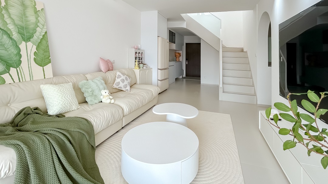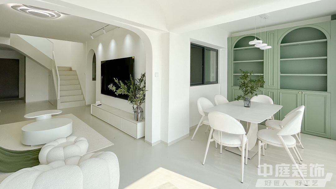 瀏覽量:449這是一套118㎡的復(fù)式住宅,將清新綠與奶油色巧妙融合,營(yíng)造出一種寧?kù)o而溫馨的氛圍,如夢(mèng)如幻的浪漫生活由此開始,大面積窗紗將室外光線過(guò)濾后傾撒入客廳。