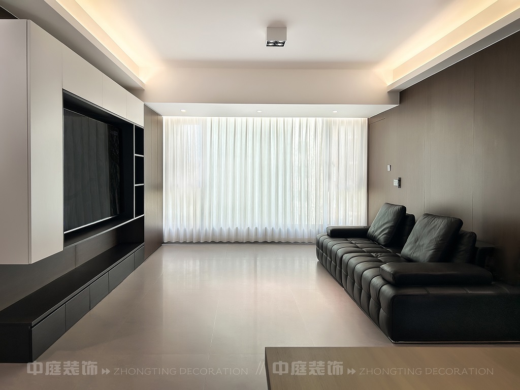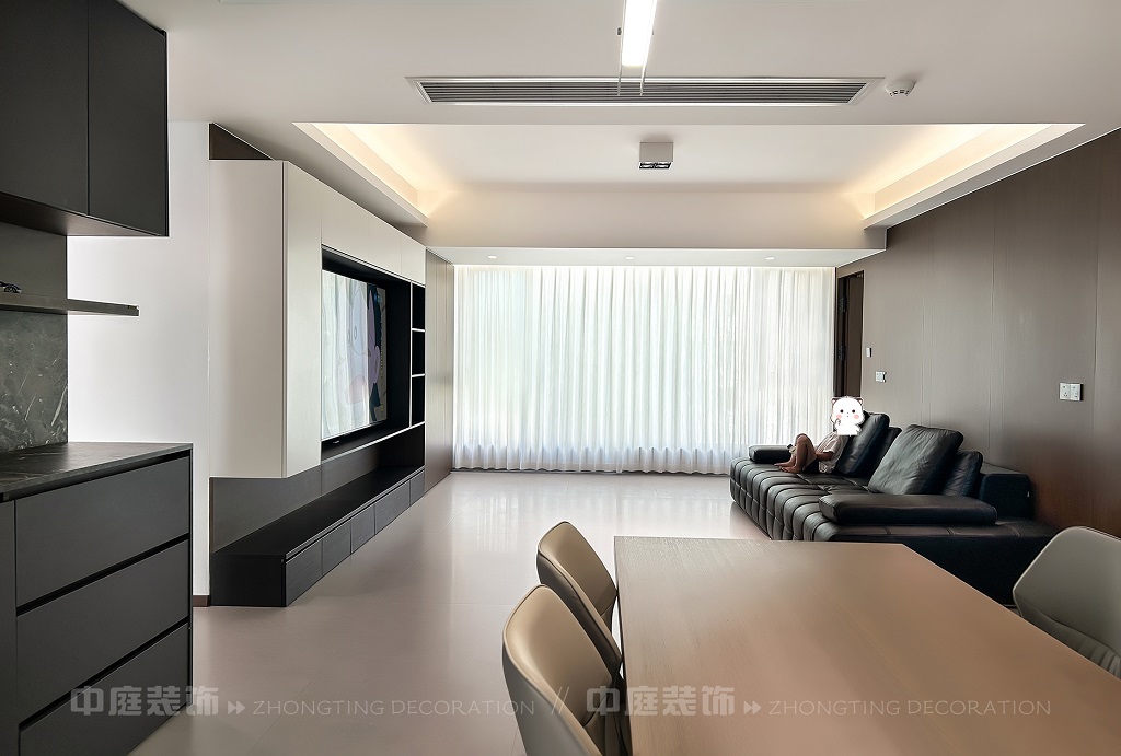 瀏覽量:72客廳以現(xiàn)代黑白灰極簡(jiǎn)風(fēng)格為核心,大面積白紗簾引入自然光線(xiàn),黑色皮質(zhì)沙發(fā)質(zhì)感高級(jí)。開(kāi)放式布局,深灰櫥柜與木質(zhì)餐桌形成材質(zhì)對(duì)比,線(xiàn)性吊燈提升精致感,功能與美學(xué)兼具,營(yíng)造現(xiàn)代簡(jiǎn)約的烹飪用餐氛圍。輕柔窗簾與柔和燈光,打造靜謐休息空間。精致的材質(zhì)選擇與合理的功能規(guī)劃,詮釋了“少即是多”的現(xiàn)代簡(jiǎn)約居住美學(xué)。