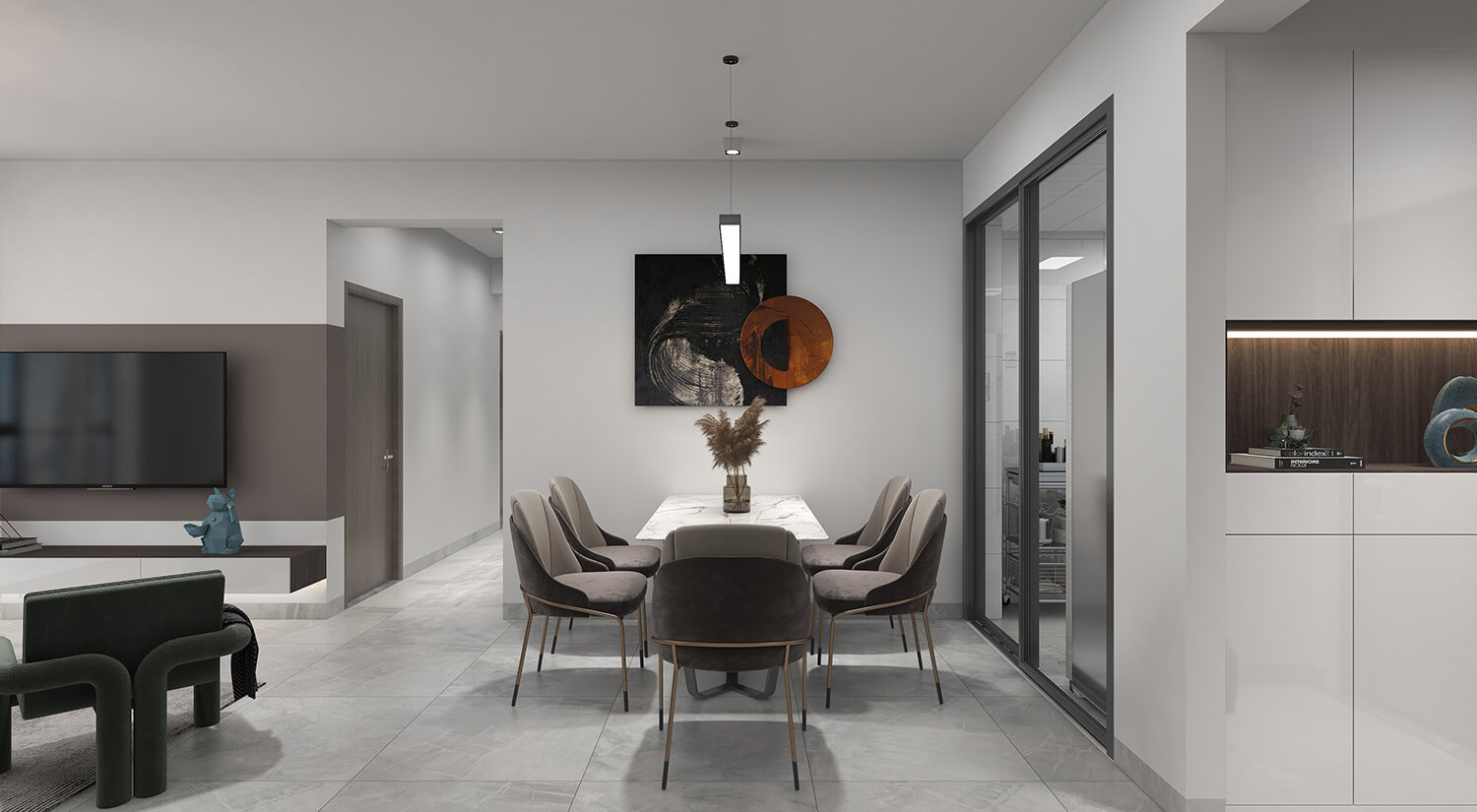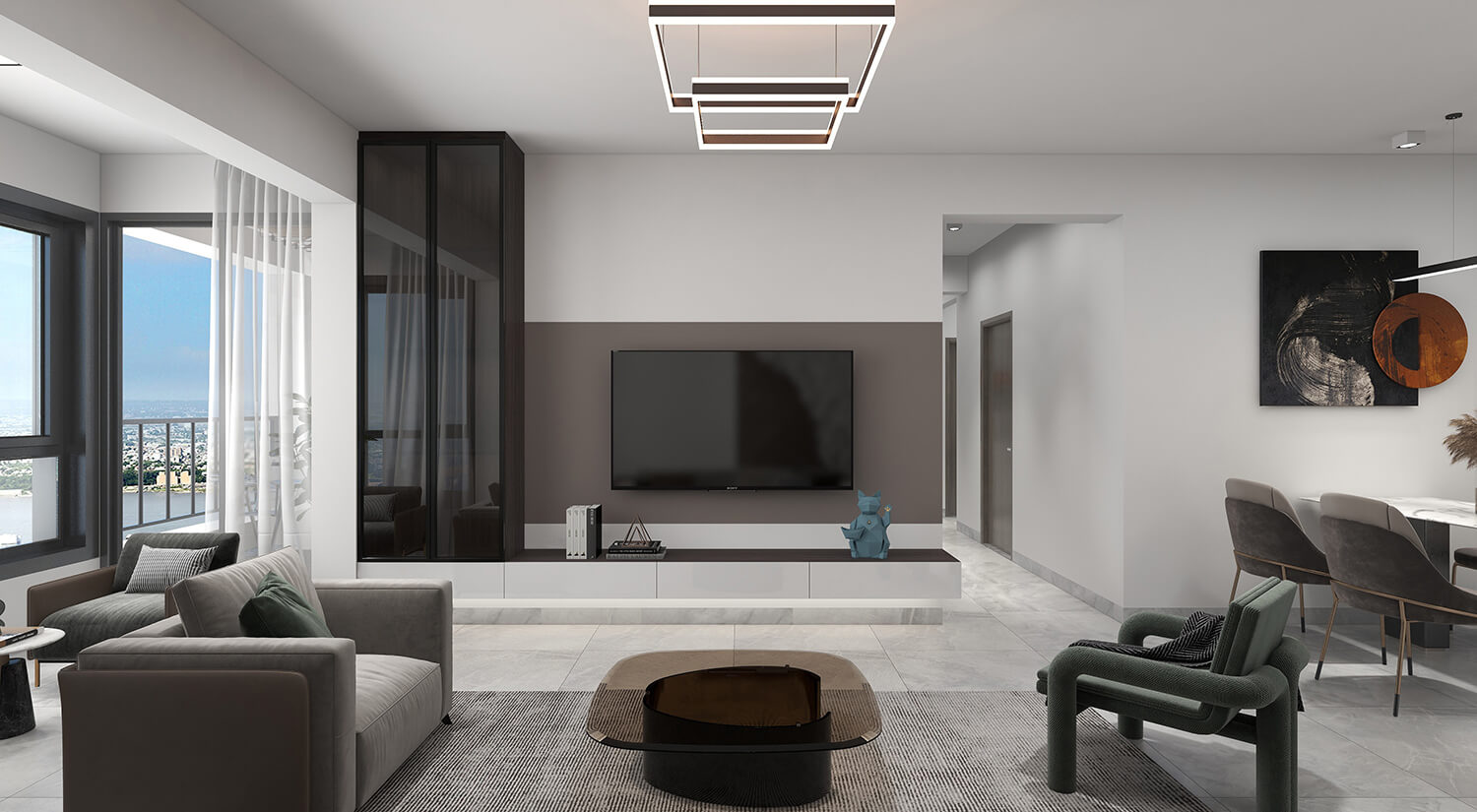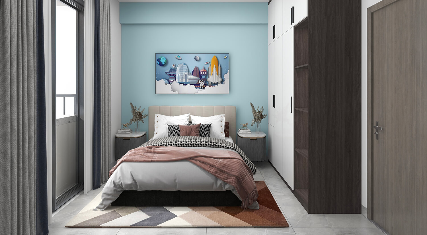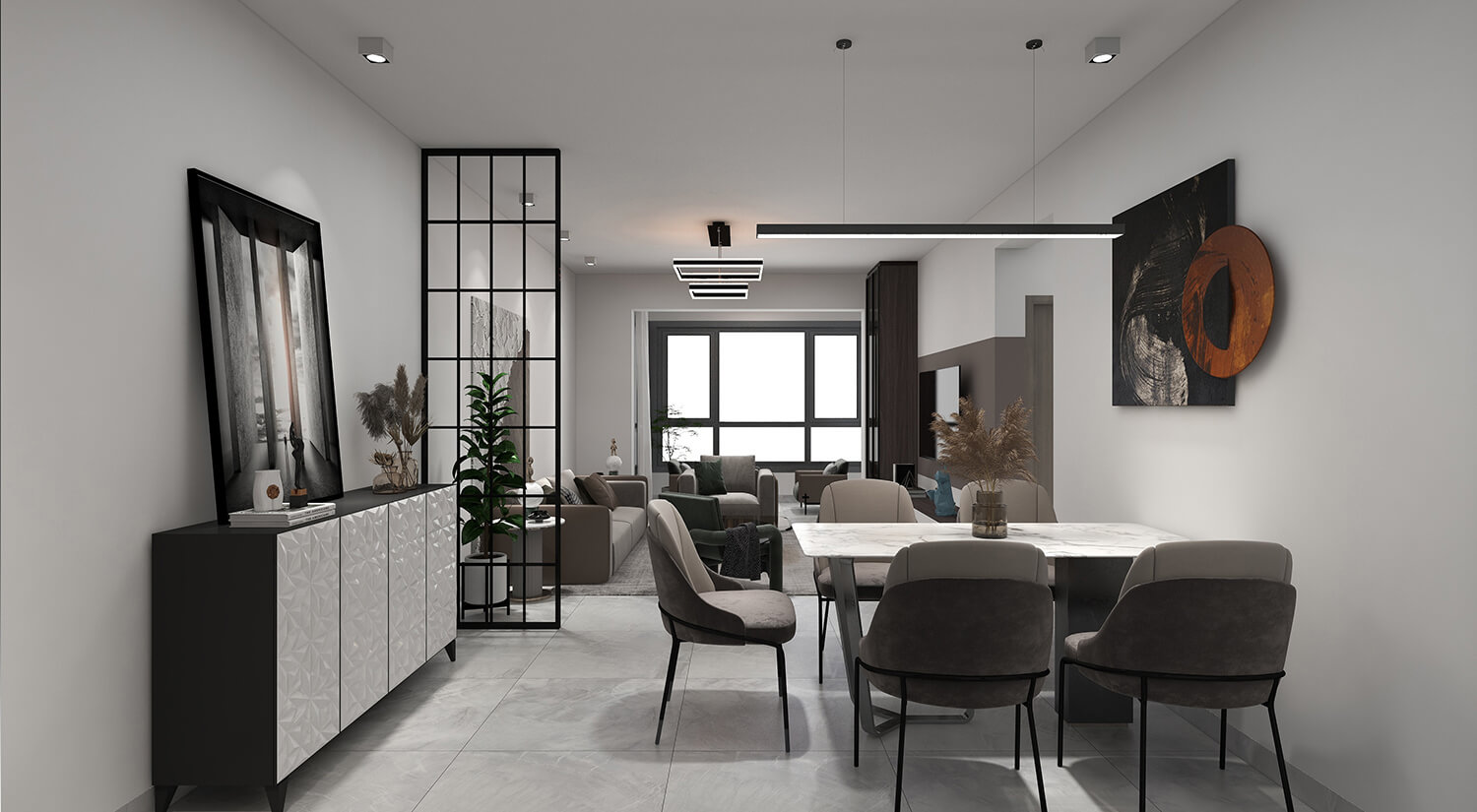 本案例戶型為:3房1廳1衛(wèi),總面積99㎡。在房間的布局上,現(xiàn)代簡約風格強調實用性和舒適感。布局簡潔明了,避免過多的家具和裝飾品,力求創(chuàng)造出整潔、明亮和開放的空間感。