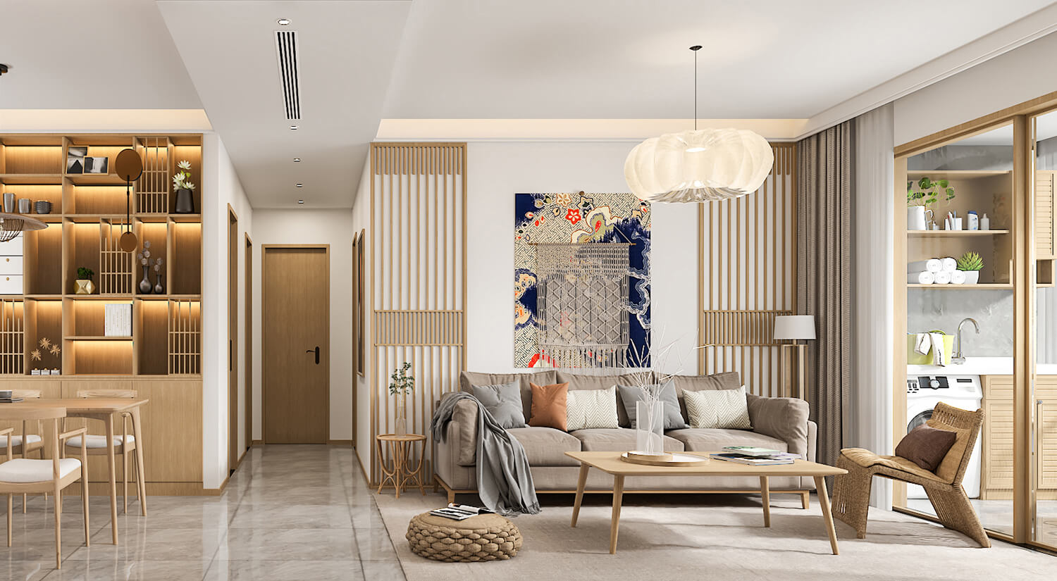日式風格的色彩通常是簡約的,以自然色調為主。墻面和地板通常采用米色、淺黃色、灰色和白色,這些顏色可以使整個空間看起來更加明亮和寬敞。