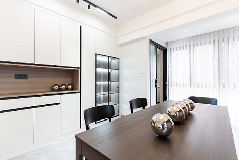 2、拓展生活陽臺區(qū)域納入至餐廳,實(shí)現(xiàn)多人化聚餐功能。